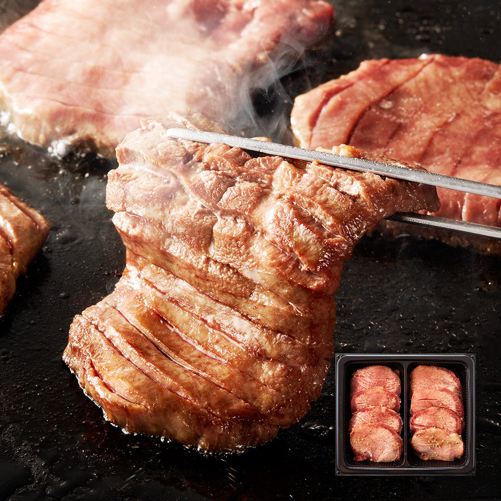 牛タンの素材の選択、加工を知り尽くしたキャリア45年の肉コンシェルジュが厳選した牛タンを自家製酵素と独自調合塩(食塩、コショウ、玉ねぎ、にんにく、セロリ等)で丹念に味付けを行った逸品です。 今日は存分に塩タンを堪能したい!そんなときこそ本品をご賞味ください。焼いていただくだけでレストランの味がご家庭でお楽しみいただけます。